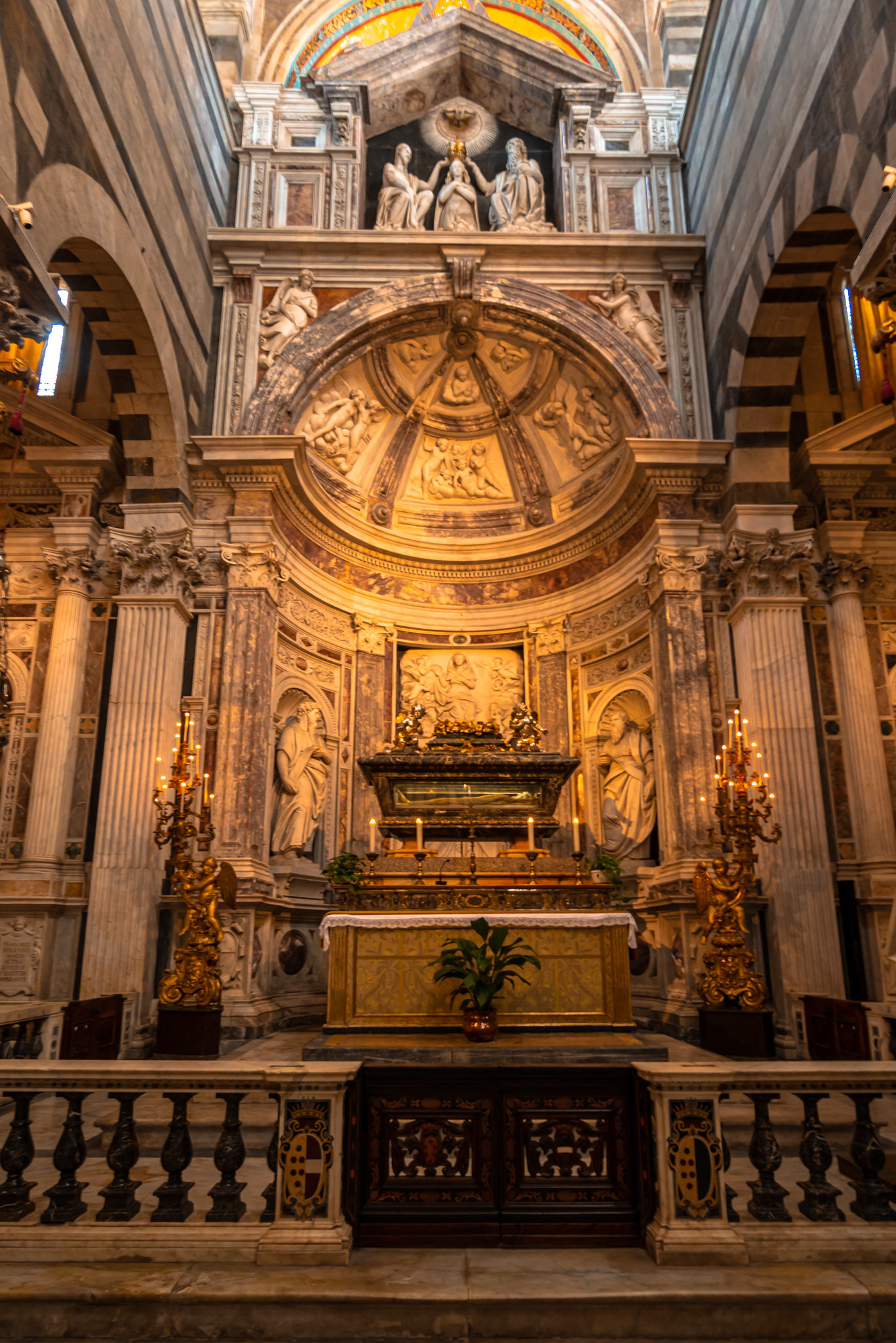 Nous poursuivons notre visite vers le Camposanto monumentale, décoré d’immenses fresques datant du XIVè siècle. Il abrite plusieurs tombeaux ayant appartenu aux classes supérieures de la ville. Le lieu est très calme, comme vous pouvez le voir sur nos photos… Et il est remarquable sur le plan architectural !