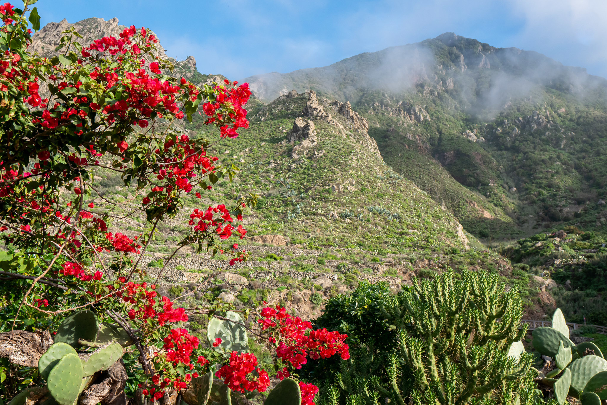 Ténérife est une île de contrastes : l’ouest et son parc national de Teide, lunaire, poussiéreux, désertique et aux températures fraîches à cette altitude en novembre, l’est et ses paysages verts, à la nature luxuriante, aux températures chaudes et au climat particulièrement lourd et humide.