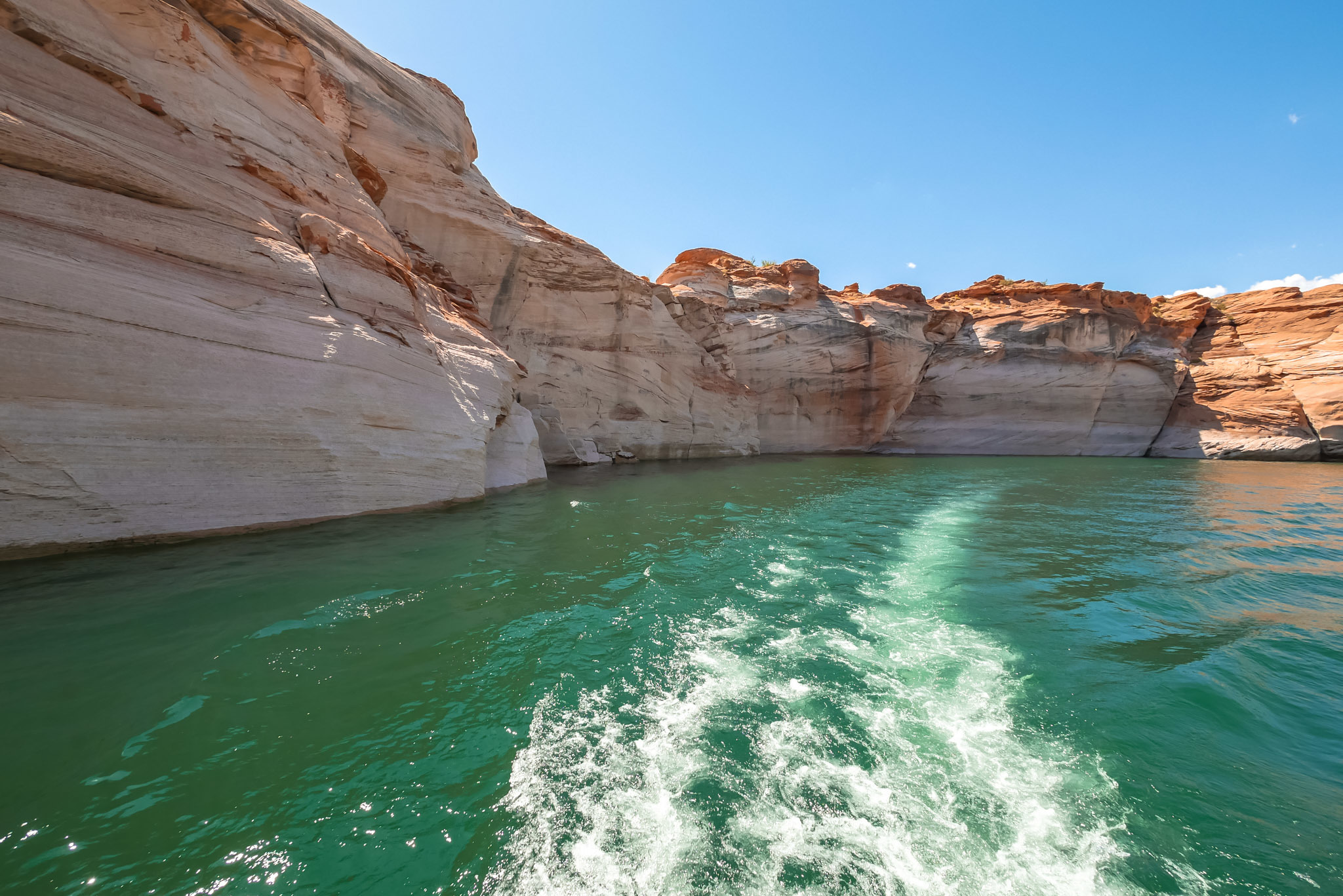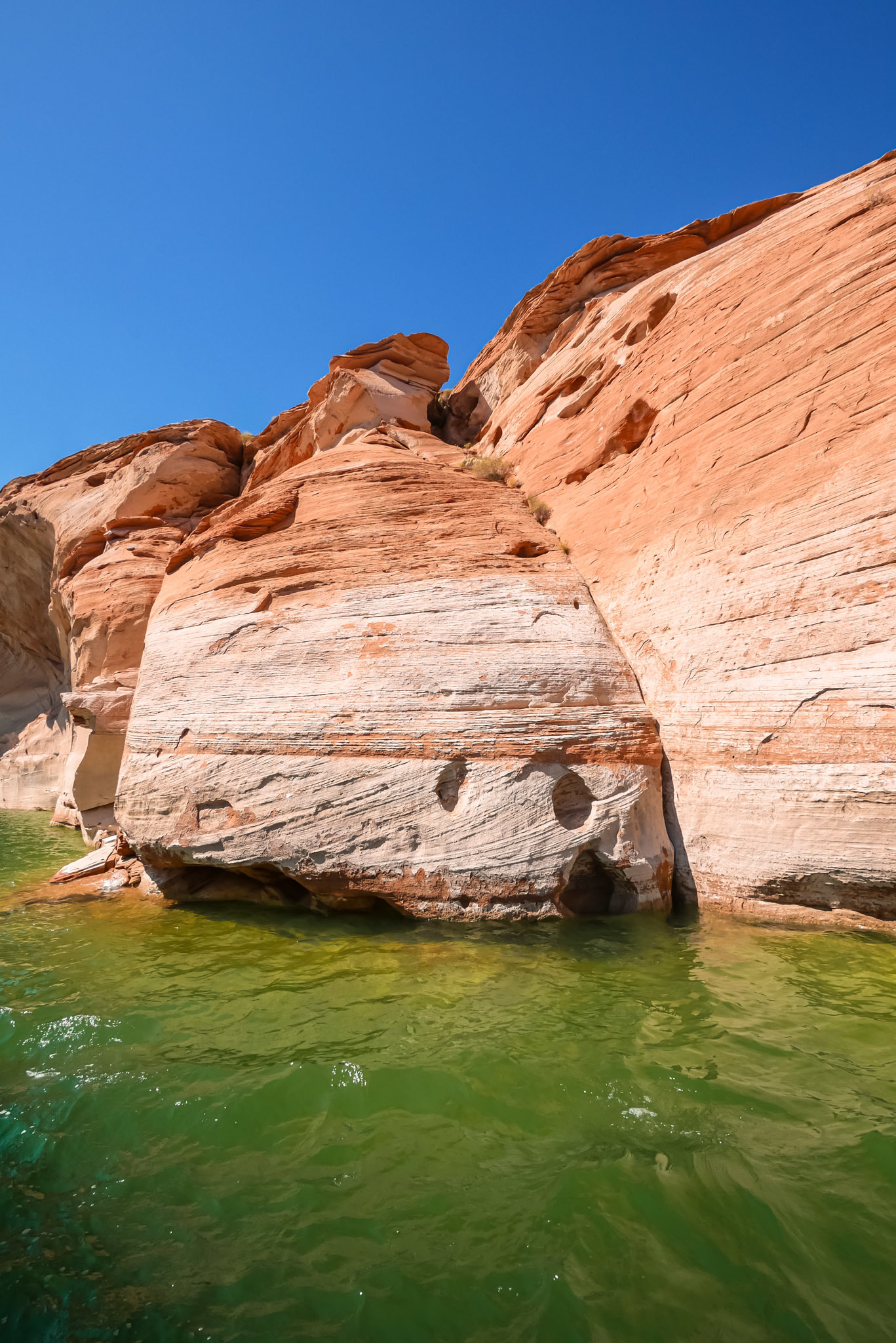 En quittant Antelope Canyon le lendemain, nous avons souhaité rester un peu autour du lac Powell. Impossible de retrouver le nom de la compagnie avec laquelle nous avons fait cette balade d’environ 1h30, mais vous en trouverez plusieurs dans le secteur de la Marina du lac.