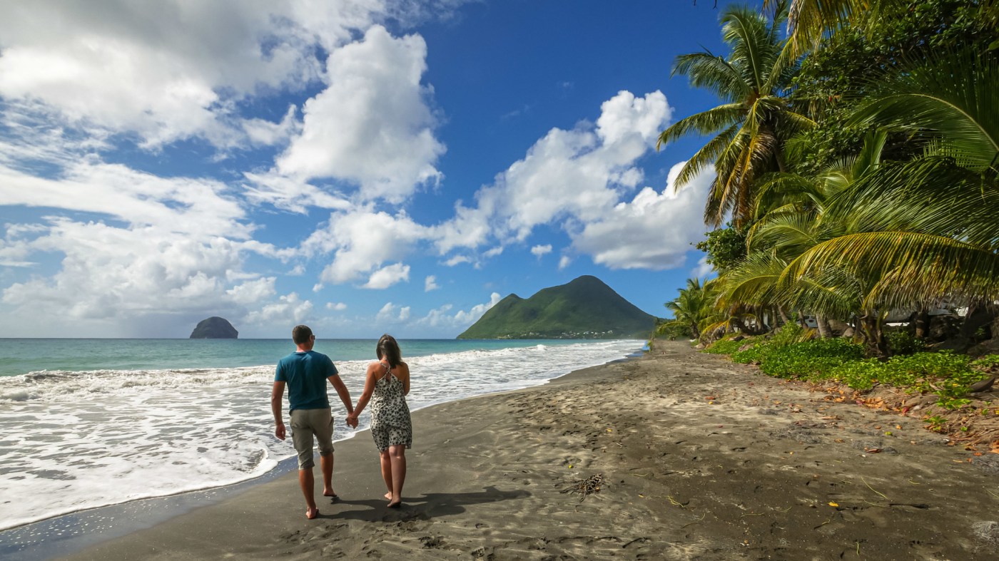 Une des plages les plus célèbres et photographiées de Martinique et pour cause ! Sable noir, cocotiers verdoyants, vue spleindide sur le rocher du Diamant et le Morne Larcher… Le parfait cliché des DOM-TOM !