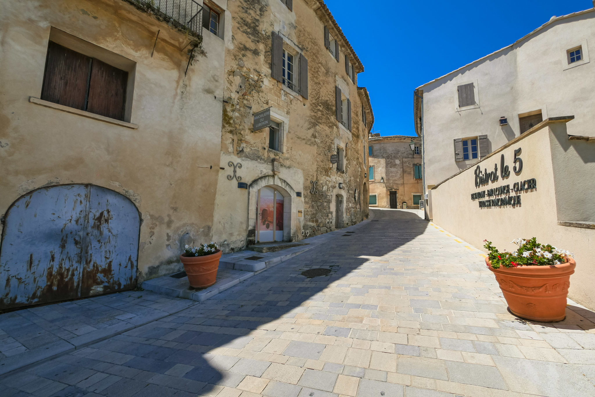 • Café du Progrès : un bistrot de village chic et choc. On y mange très bien, et il y a un grand soin apporté à la présentation des assiettes, le tout avec une vue sur toute la vallée du Luberon. Magique ! Attention, le restaurant est ouvert uniquement le midi.