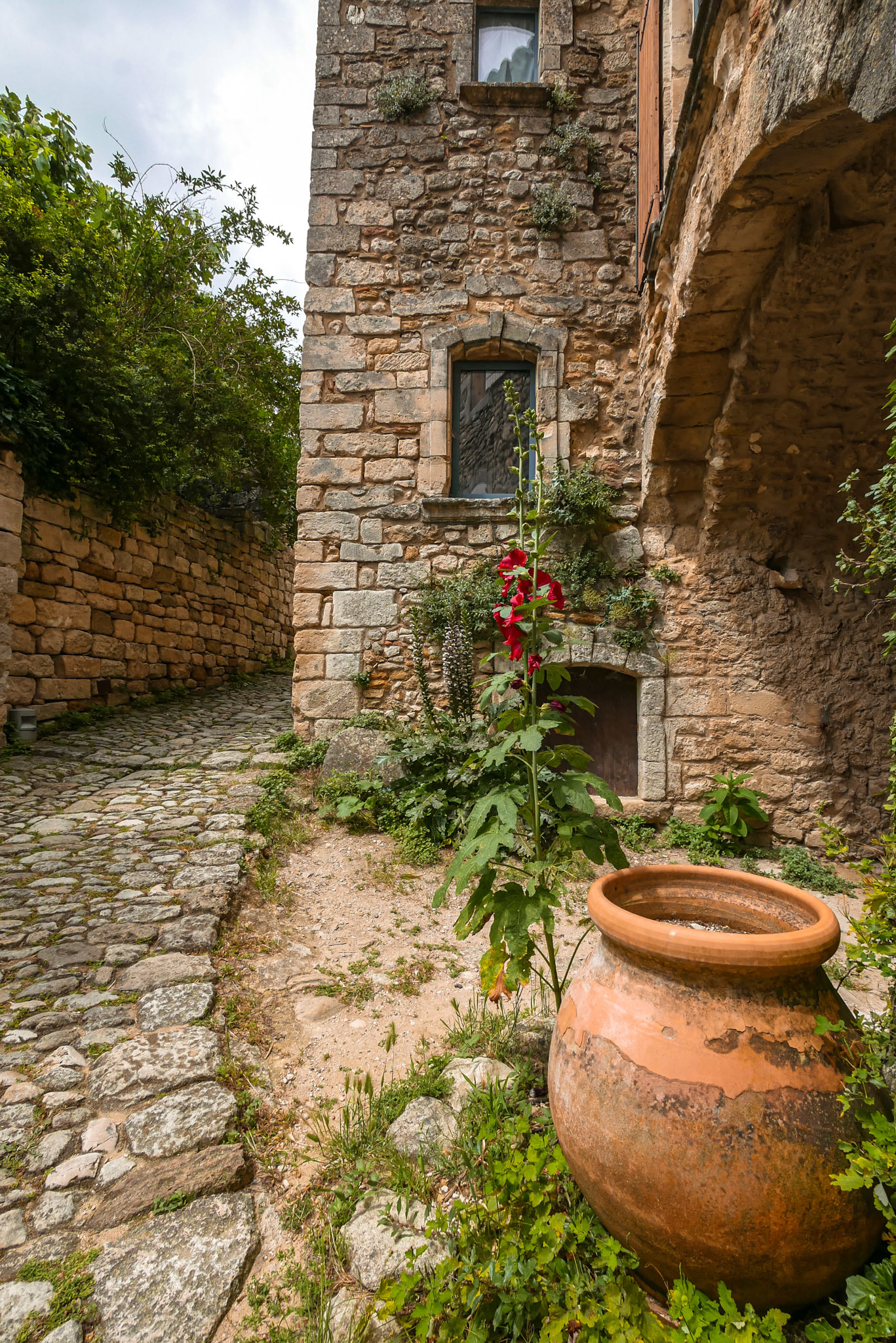 Nous adorons ces ruelles envahies par la végétation, les pots en terre cuites et les plantes méditerranéennes.
