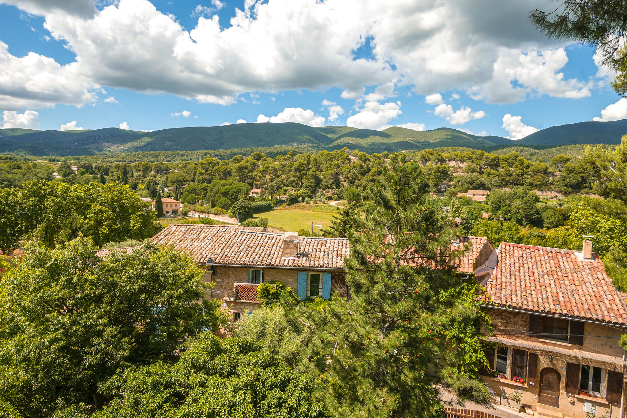 En prenant un peu de hauteur, on admire le village dans une autre perspective. On adore regarder ces jolies façades et ces toits en tuiles provençales ! Au loin l’horizon est dégagé et offre un large panorama sur le massif du Luberon environnant.