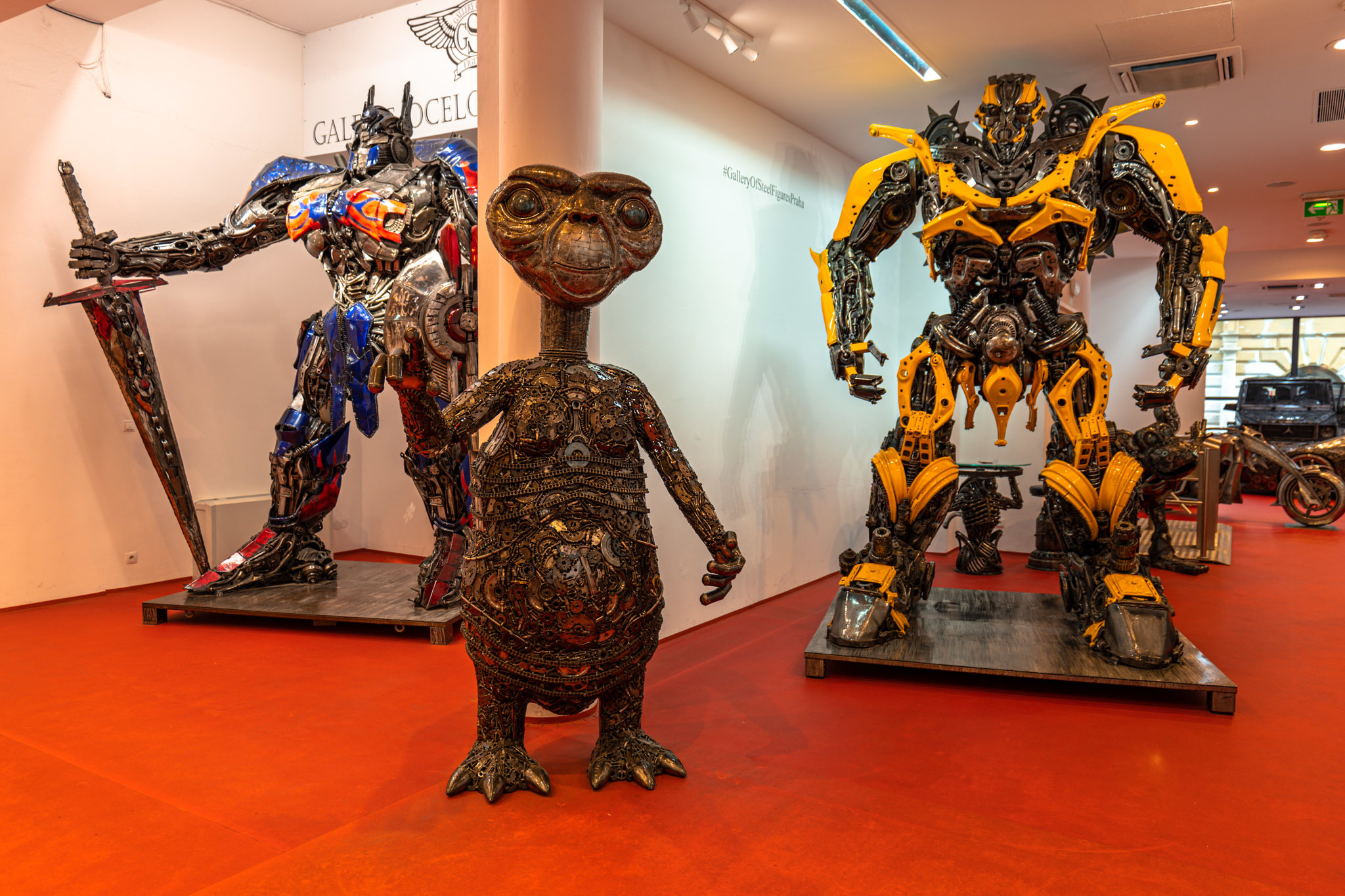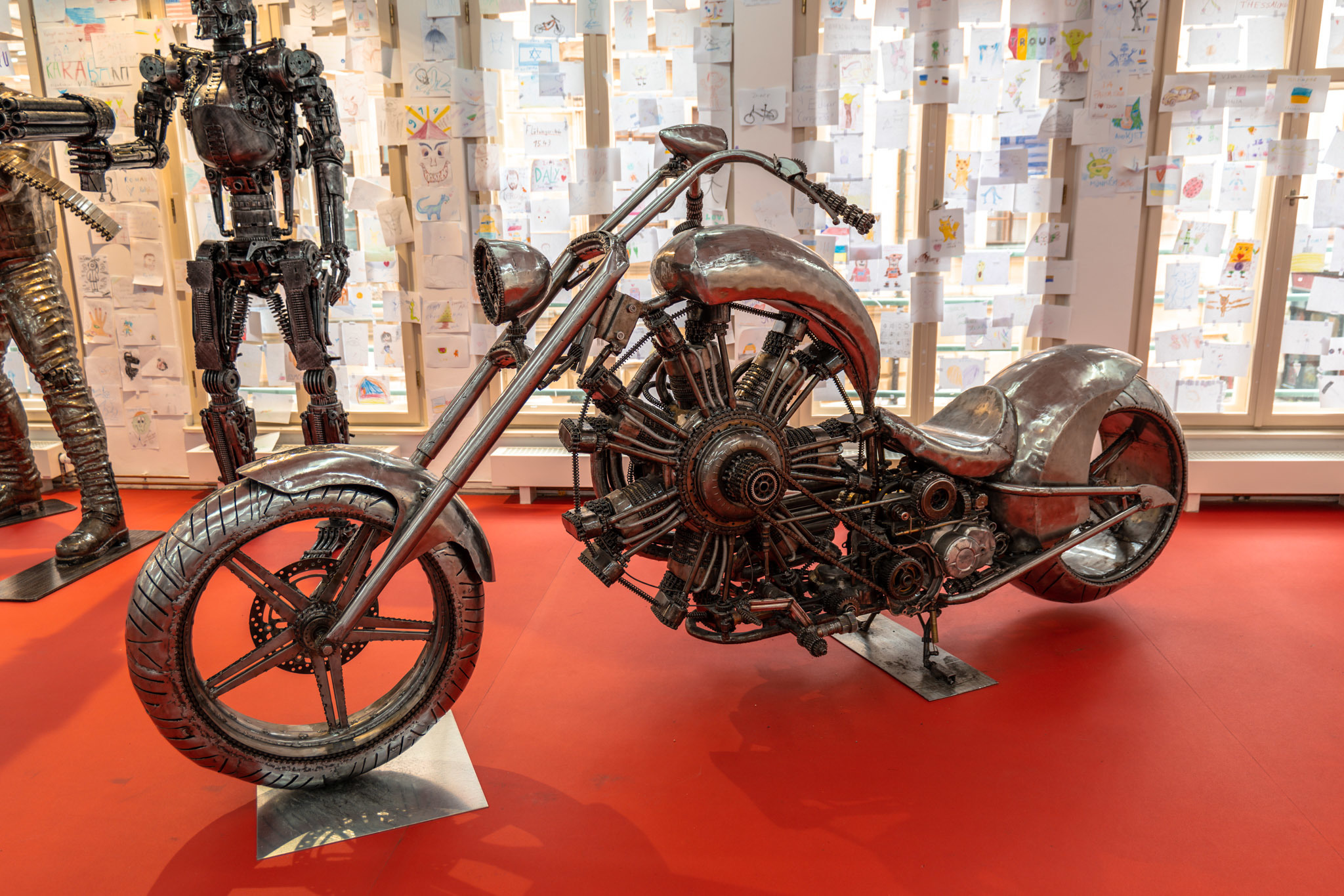 Une exposition de sculpture en acier. Certaines sont immenses, c’est diablement bien fait ! Vous avez le droit de monter dans les voitures, sur les motos également…