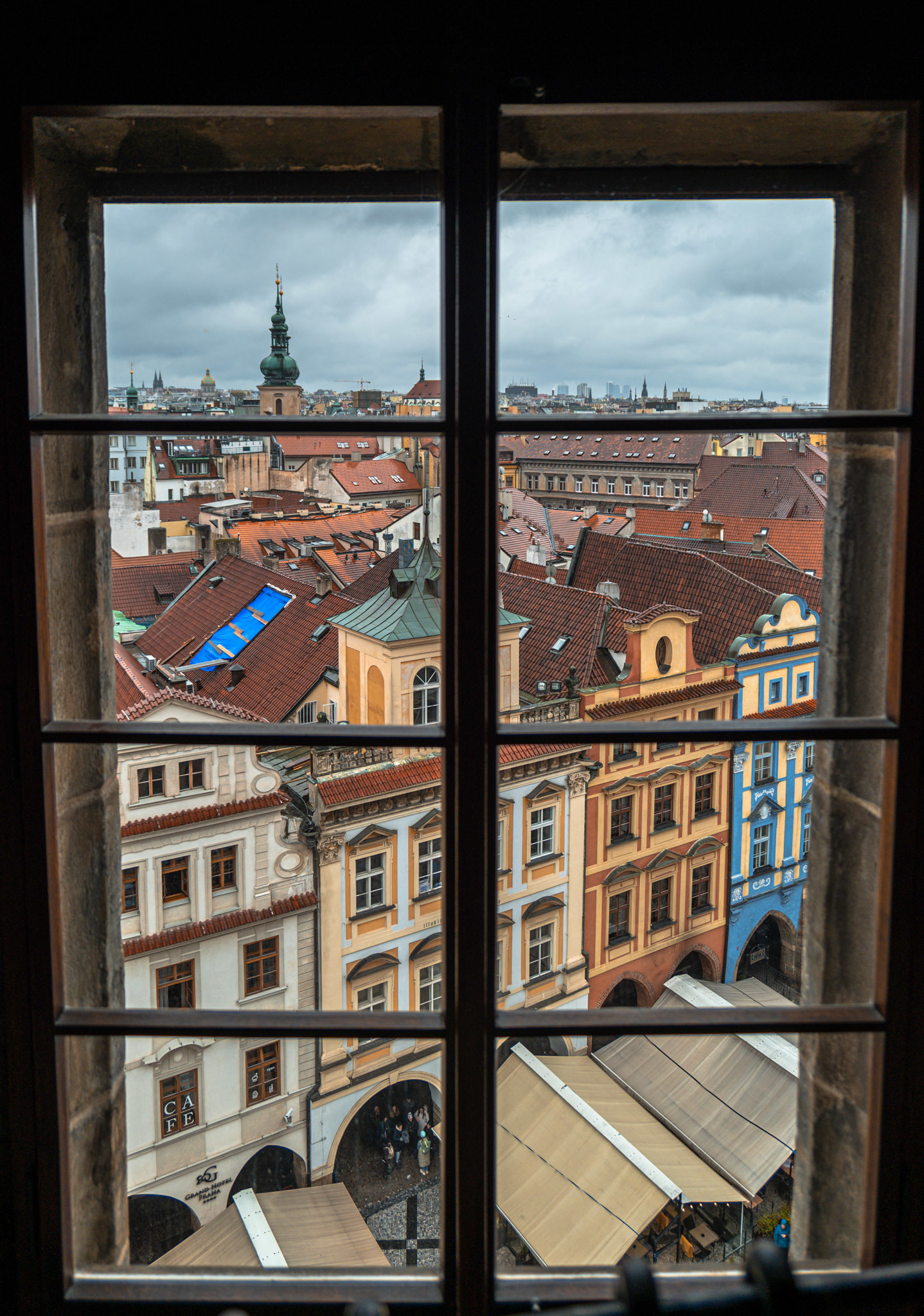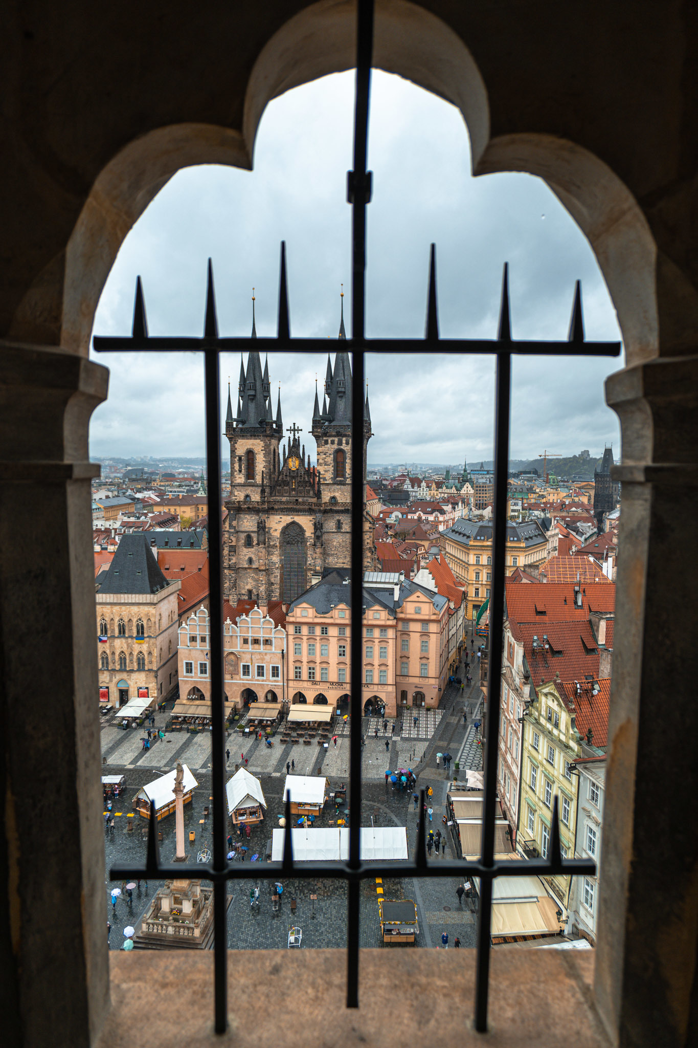 Du haut de la Tour gothique, vous serez protégés de la pluie par les arcades du bâtiment et pourrez profiter d’une magnifique vue sur le cœur de la ville. Même sous la pluie, c’est magnifique !