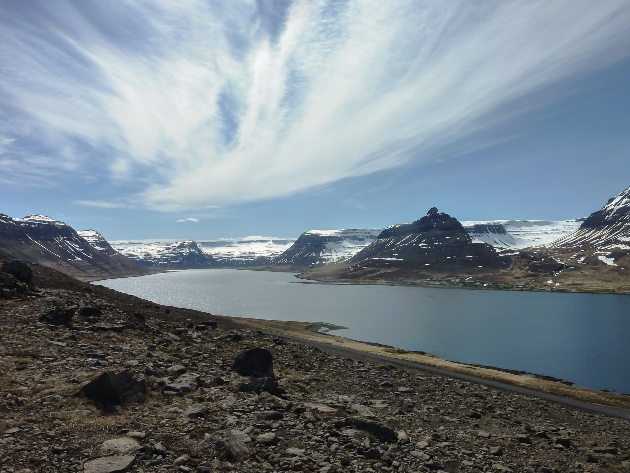 Nous longeons le petit fjord Veiðileysufjörður, fort charmant ! L’arrêt photo est obligatoire !