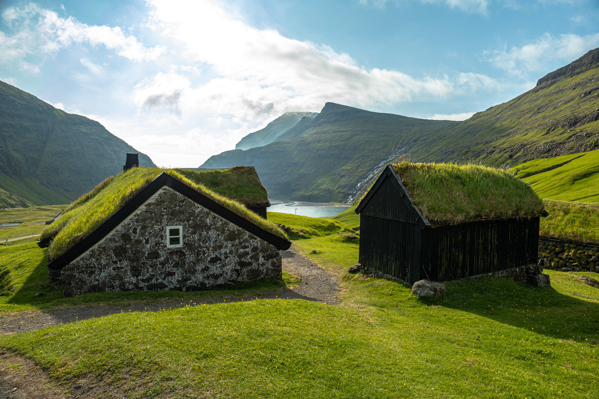 Cette photo des quatre maisons un peu excentrées du village est une des plus célèbres des Féroé.