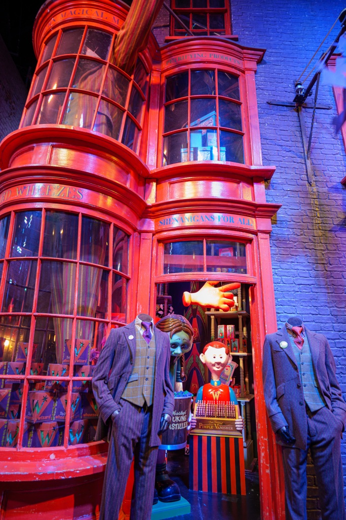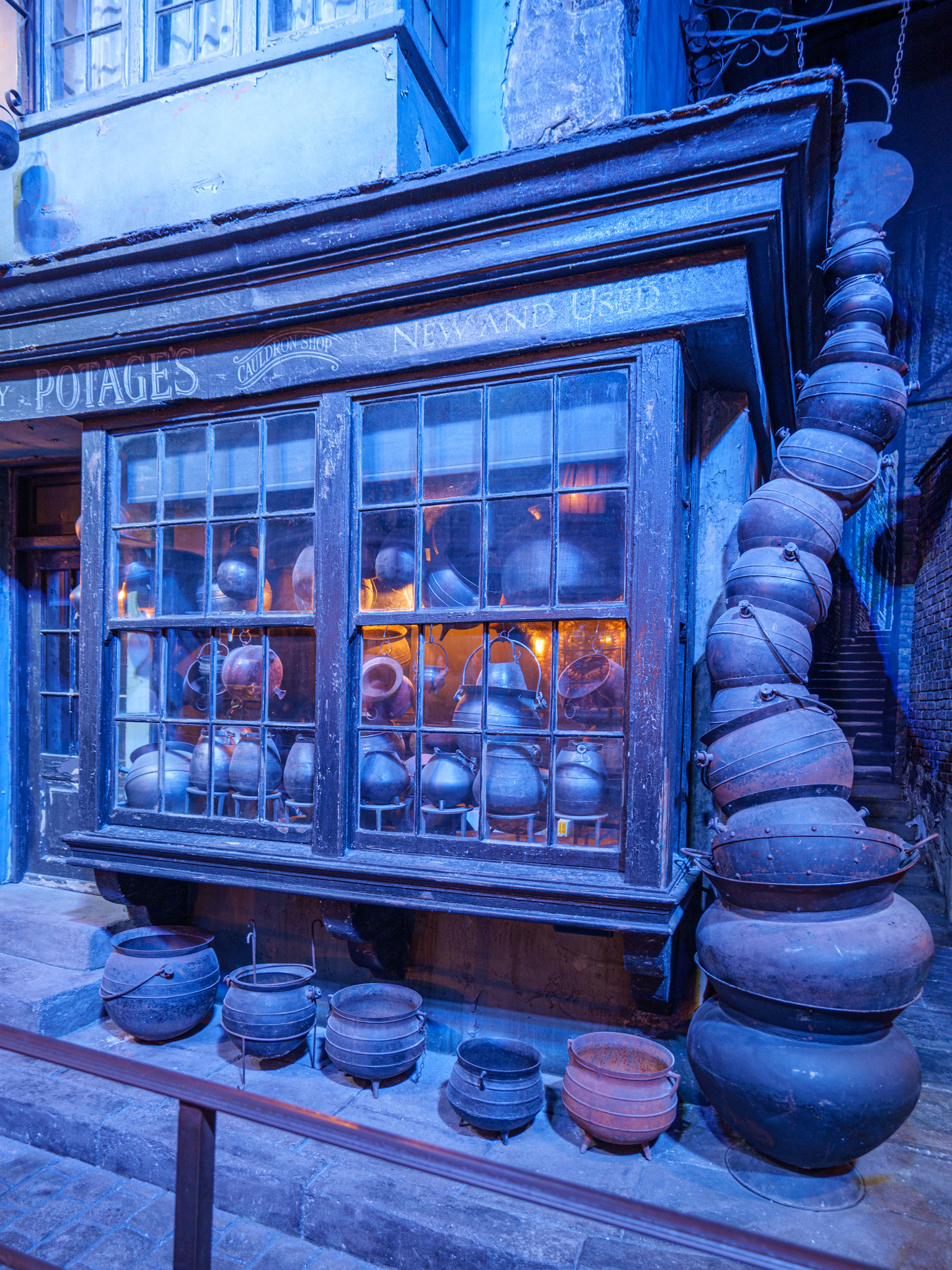 Et ses enseignes bien connues : le vendeur de baguettes Ollivander, Farces pour Sorciers Facétieux (Weasleys’ Wizard Wheezes) le célèbre magasin ouvert par les frères Weasley Fred et George, et bien d’autres encore !