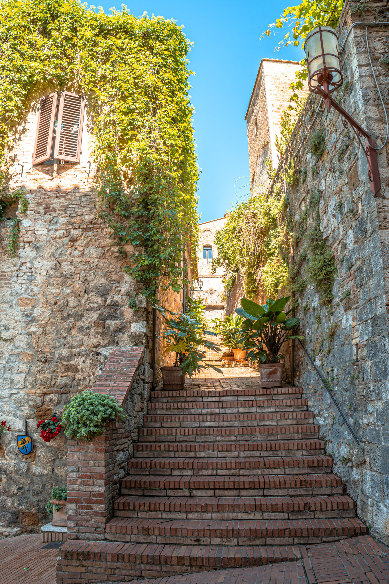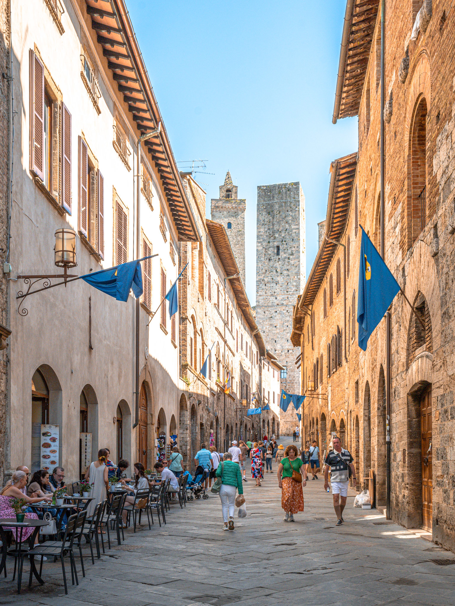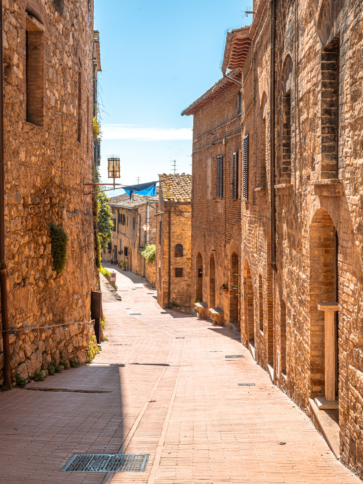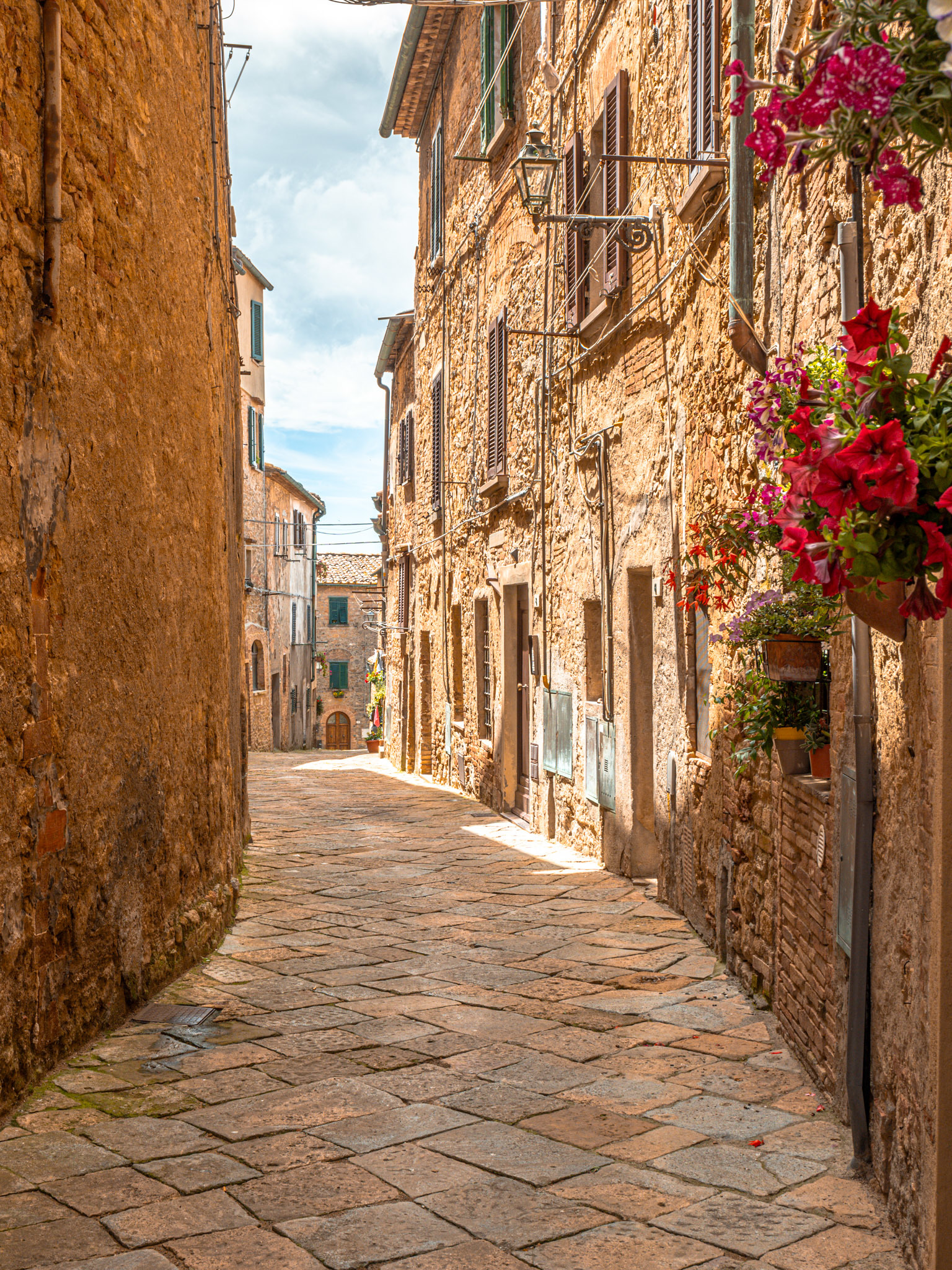 Ce village est sublimissime, mais malheureusement il est gâché par le tourisme de masse qui afflue dès 10h. Nous avons fait l’erreur d’y aller une première fois vers 9h45, c’était déjà bien chargé et les bus de touristes arrivaient sans cesse depuis Florence et Sienne pour visiter le village. Nous ne nous sommes pas attardés ce jour-là car le village est tellement magnifique que je voulais le photographier tranquillement à l’aube sans personne et on s’est dit qu’on y serait le lendemain avant 7h00. J’ai eu le nez fin en prenant quand même le temps de faire quelques photos ce jour-là, et de parcourir toutes les petites ruelles qui convergeaient toutes pour rejoindre à l’artère principale, vous comprendrez pourquoi un peu plus loin dans l’article…