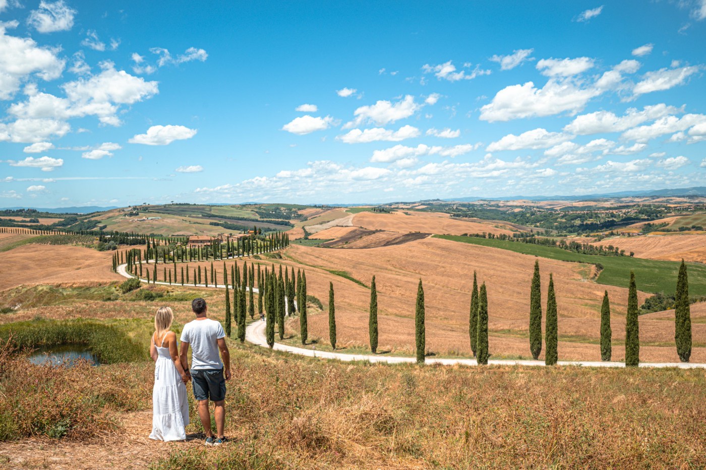 Quiconque se sera un jour intéressé à la Toscane aura déjà vu une photo des crètes de Senesi, ponctuées d’allées de cyprès. Les plus célèbres sont celles prises à l’entrée de l’hôtel Baccoleno. Cette allée est privée, et vous ne pourrez y accéder que si vous avez une réservation dans l’établissement. Néanmoins, vous pouvez vous arrêter sur le bord de la route non loin de là et marcher à travers les champs jusqu’à trouver le point de vue adapté.