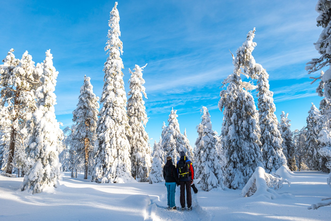 C’est l’émerveillement à chaque pas, et nous ne croisons absolument personne ici, contrairement à Riisitunturi deux jours plus tôt. Si vous cherchez un coin sympa, hors des sentiers battus pour marcher tranquillement et profiter des sapins enneigés de Laponie, c’est ici qu’il faudra venir !