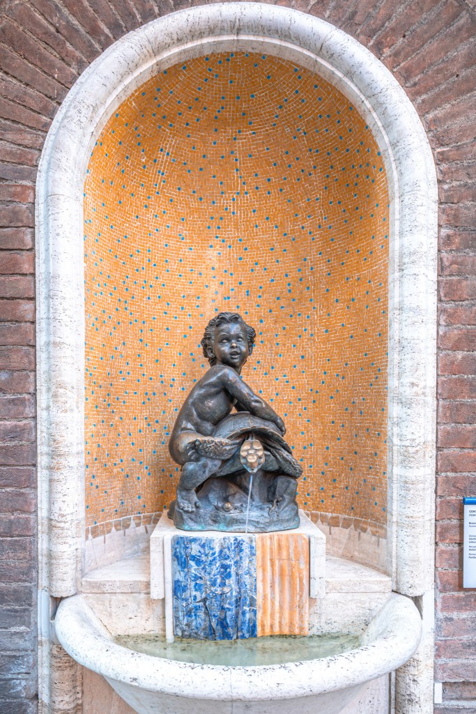 Construite au 13ème siècle, elle se trouve en contrebas de la basilique Cateriniana di San Domenico. Son eau limpide nous donnerait envie de sauter dedans tant elle invite au rafraîchissement et à la détente alors qu’il fait 36° ce jour-là ! Ceci est évidemment interdit 😀
