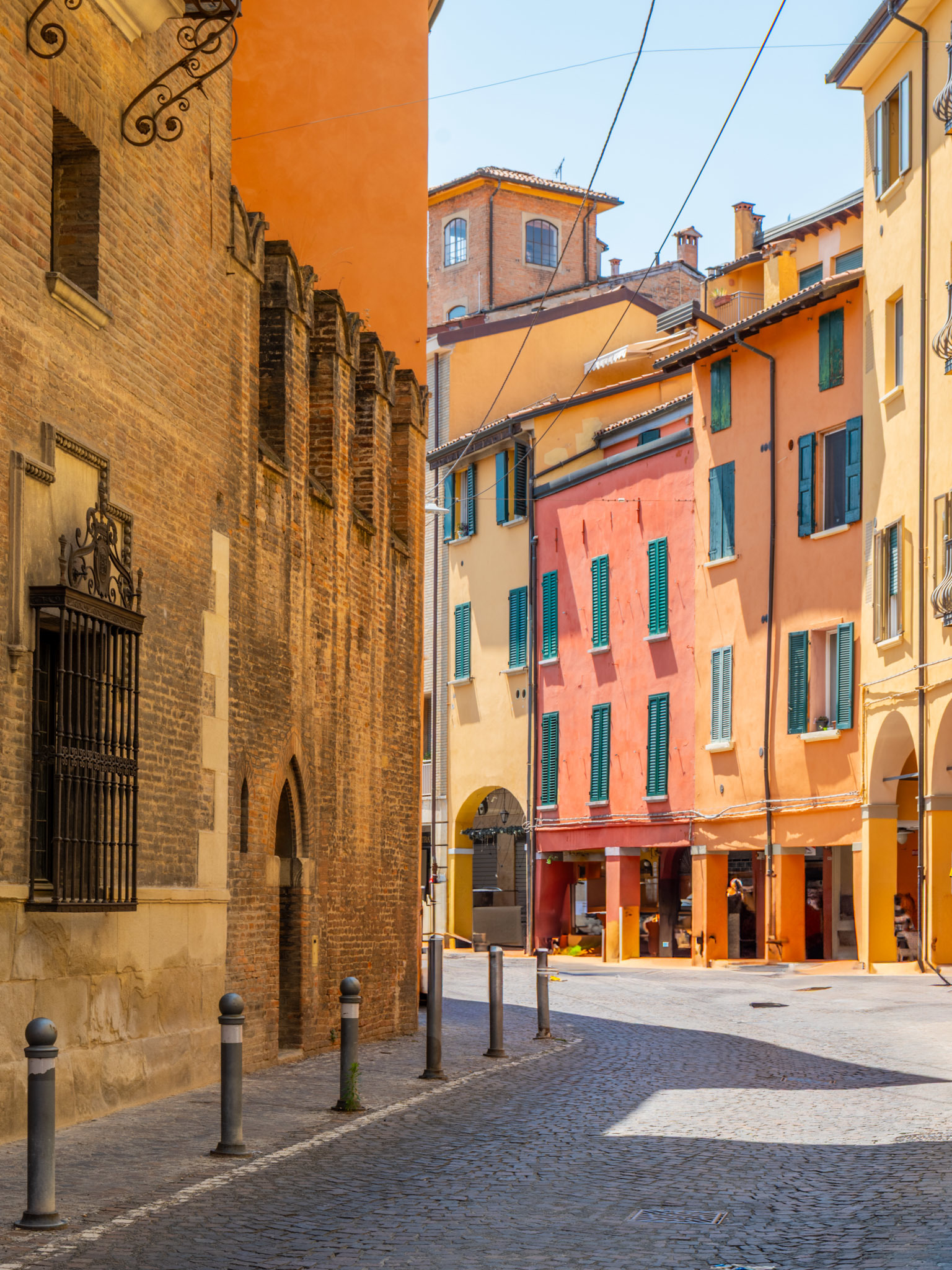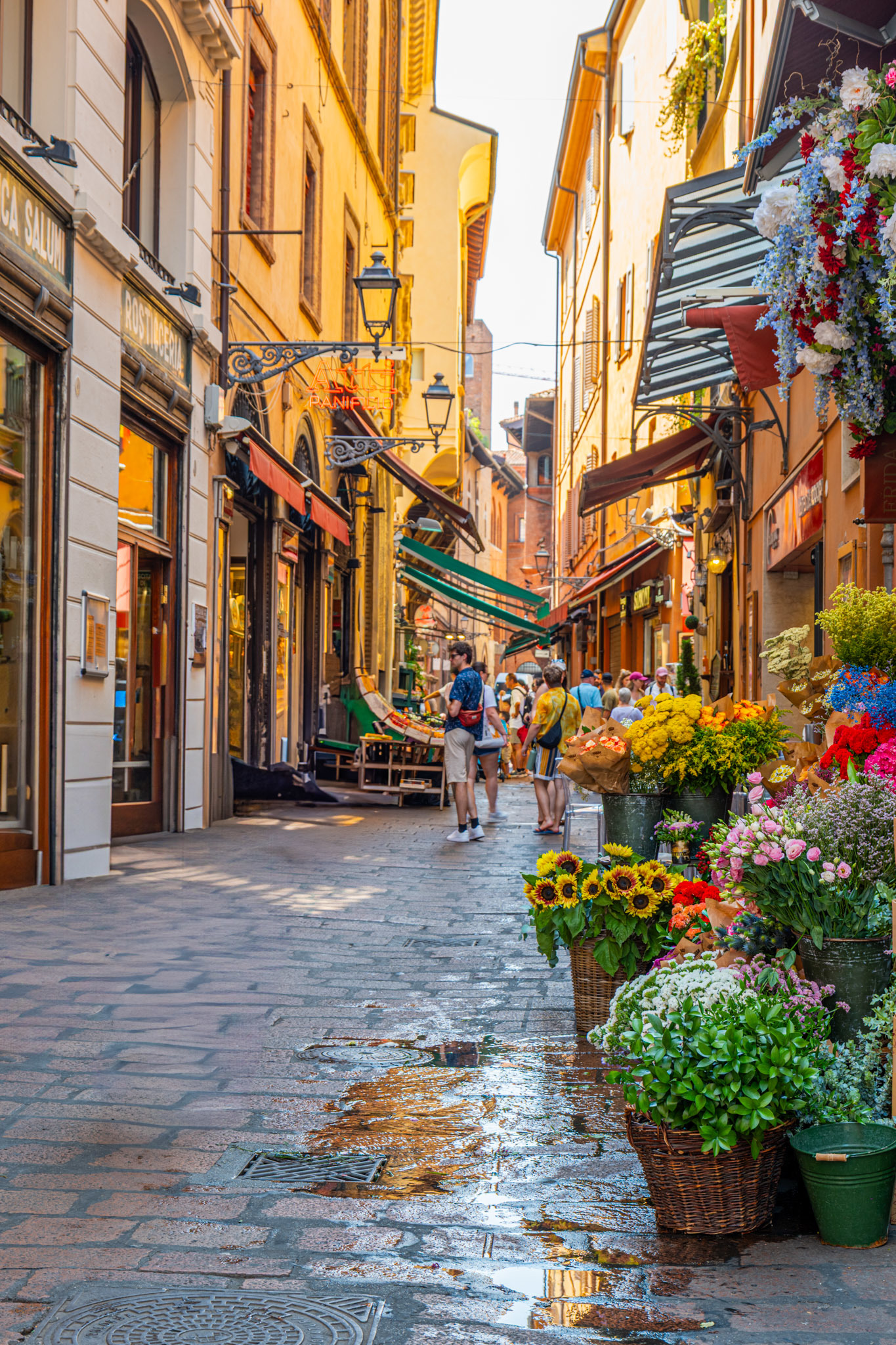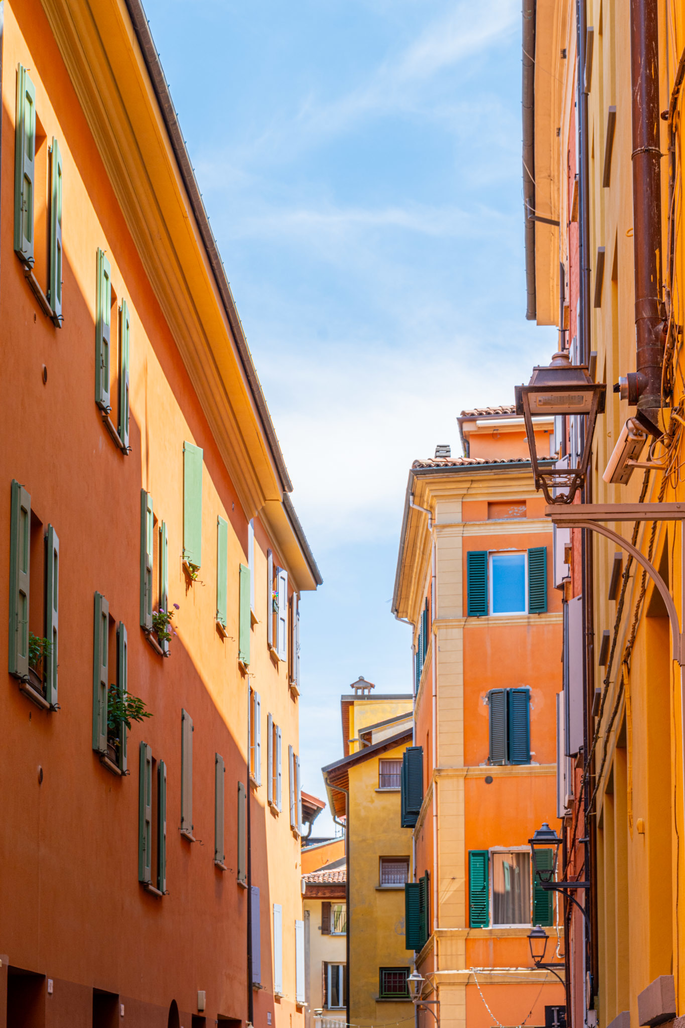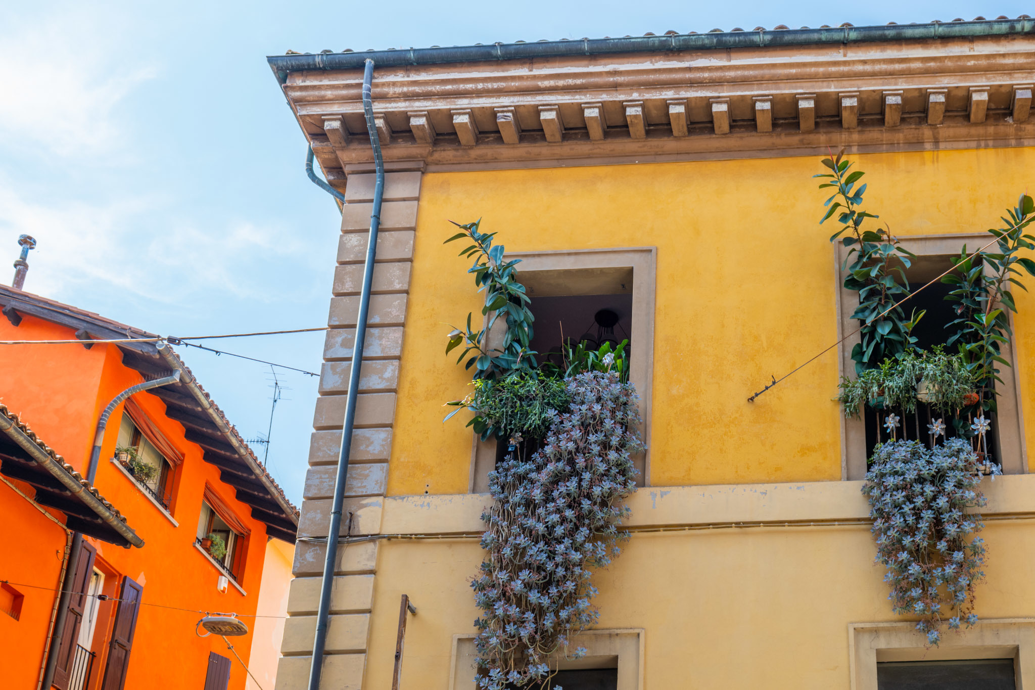 A Bologne, vous en prendrez plein la vue grâce à des portes en bois savamment travaillées, des fenêtres qui croulent sous la végétation, le tout dans des ruelles particulièrement colorées.