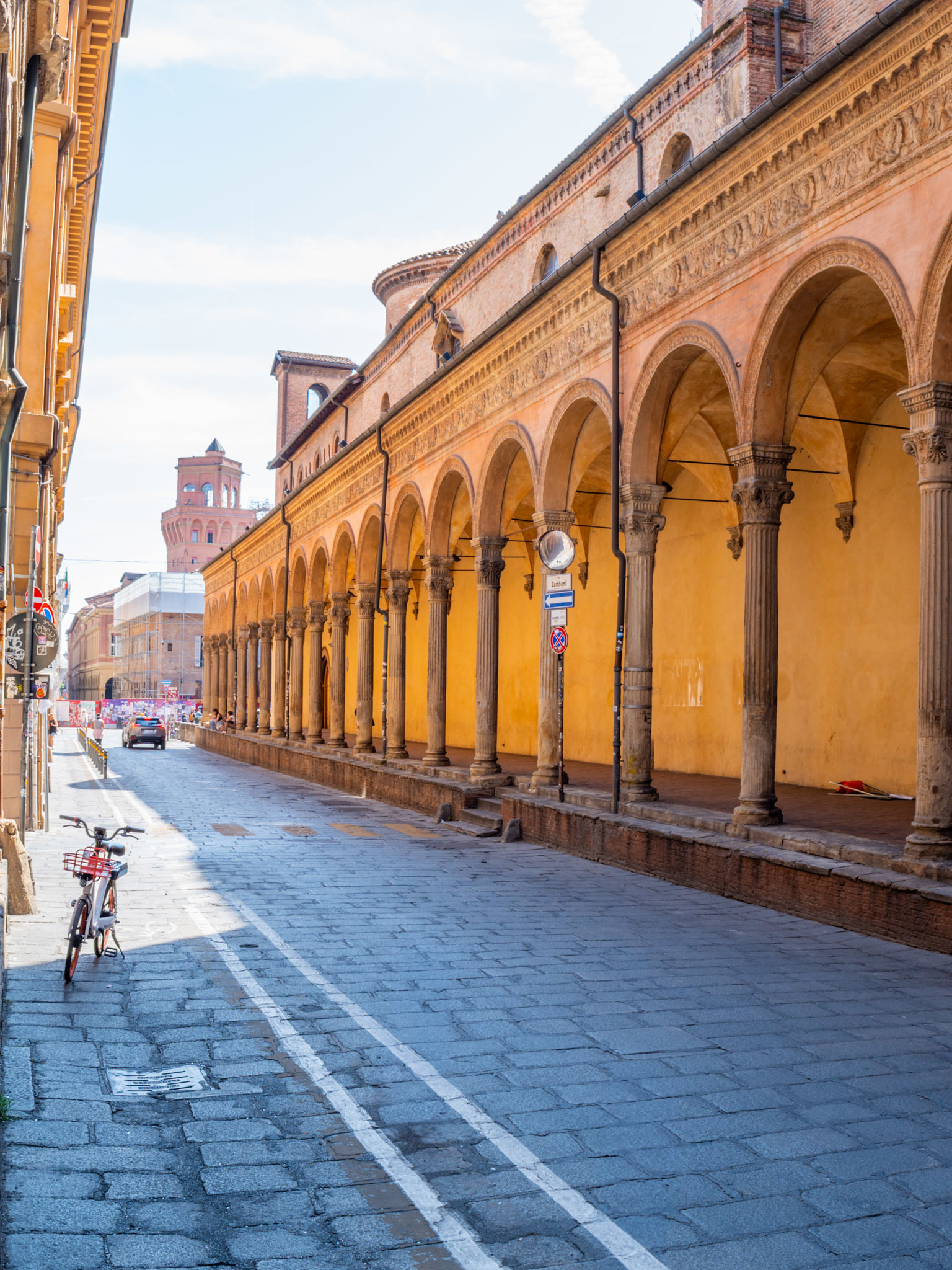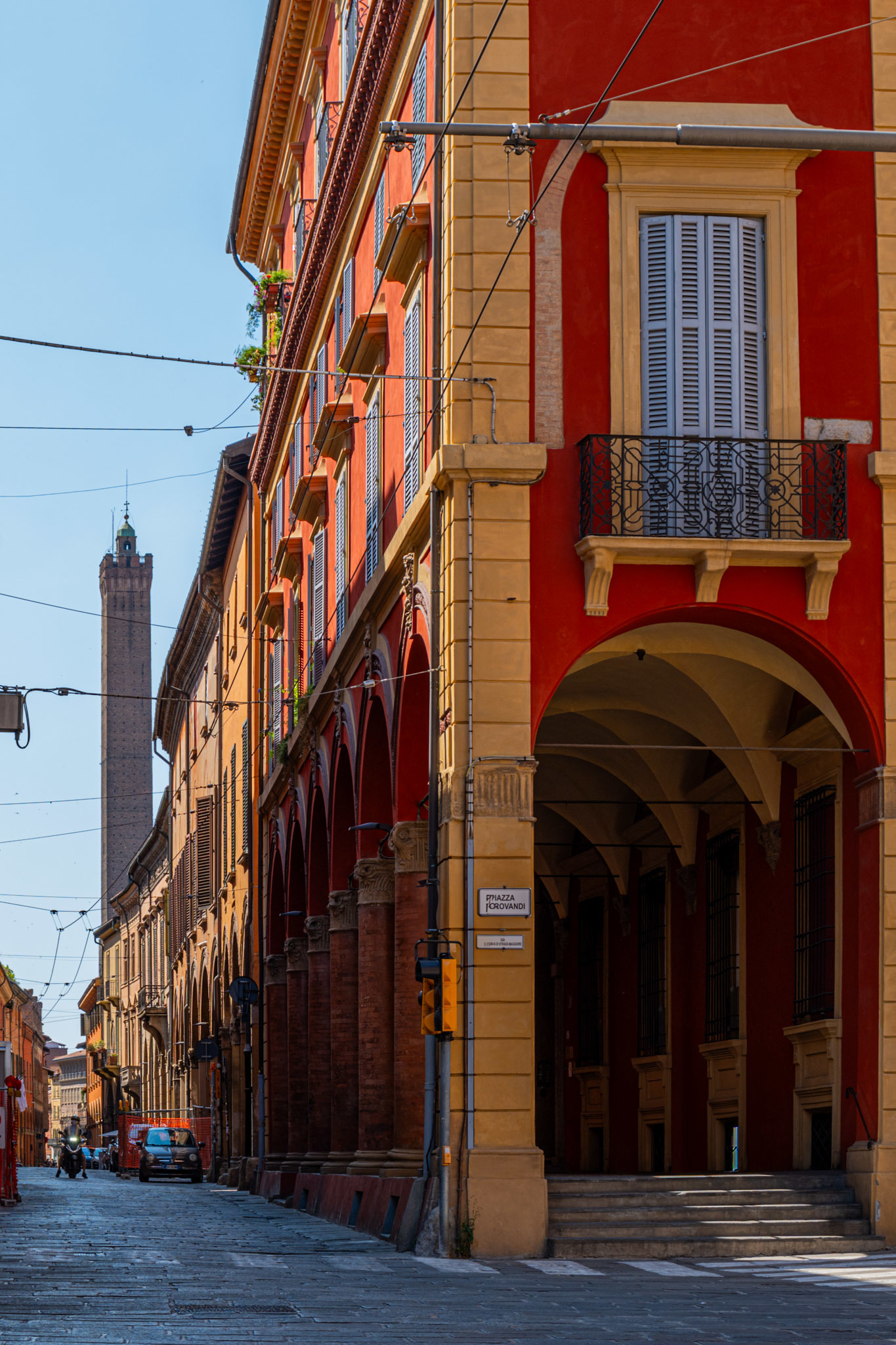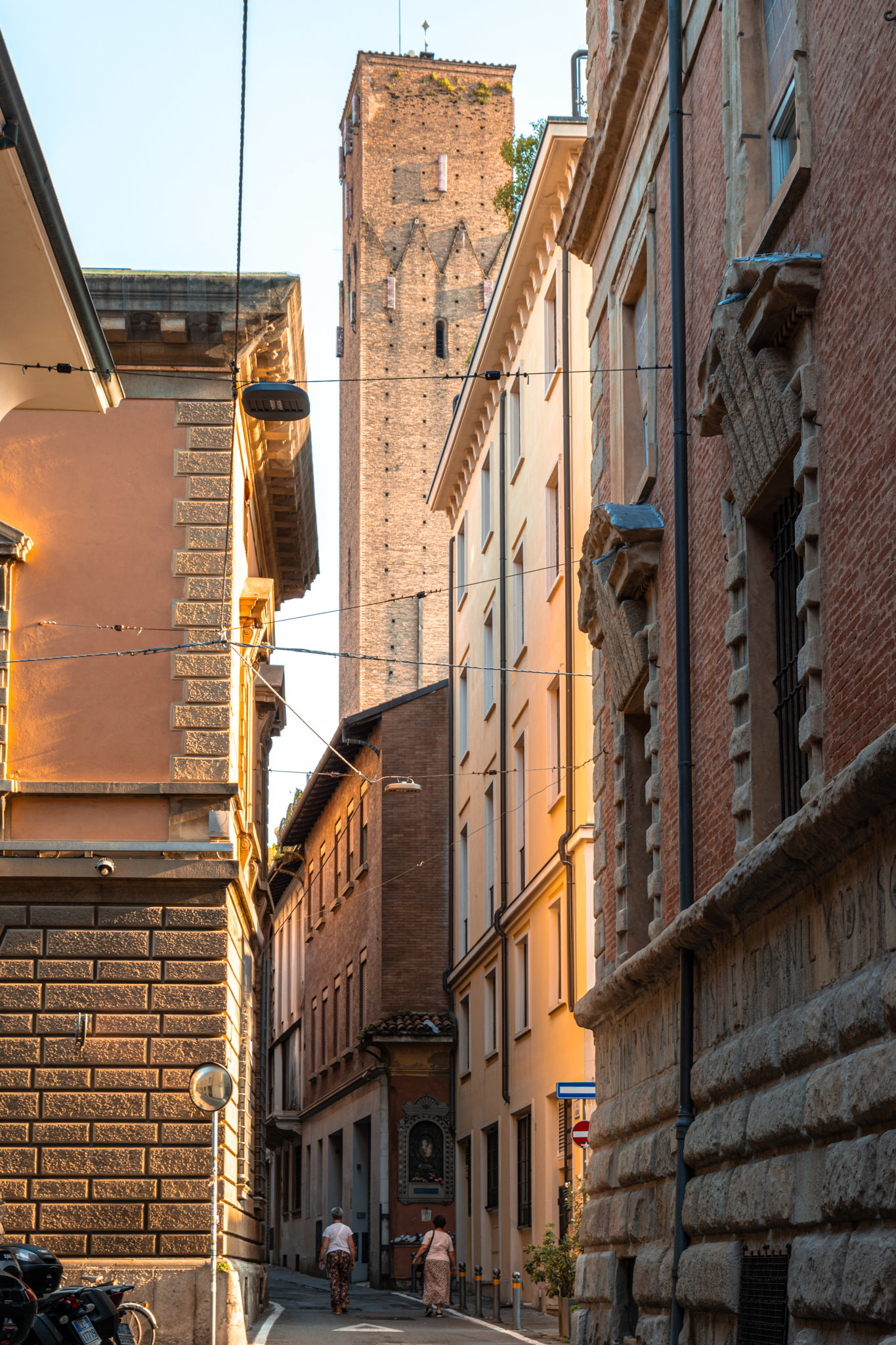 De la place, vous accéderez en une poignée de minutes aux deux Tours de Bologne. On aperçoit d’ailleurs la plus haute d’entre elle, érigée droit devant nous. Un formidable spot photo !