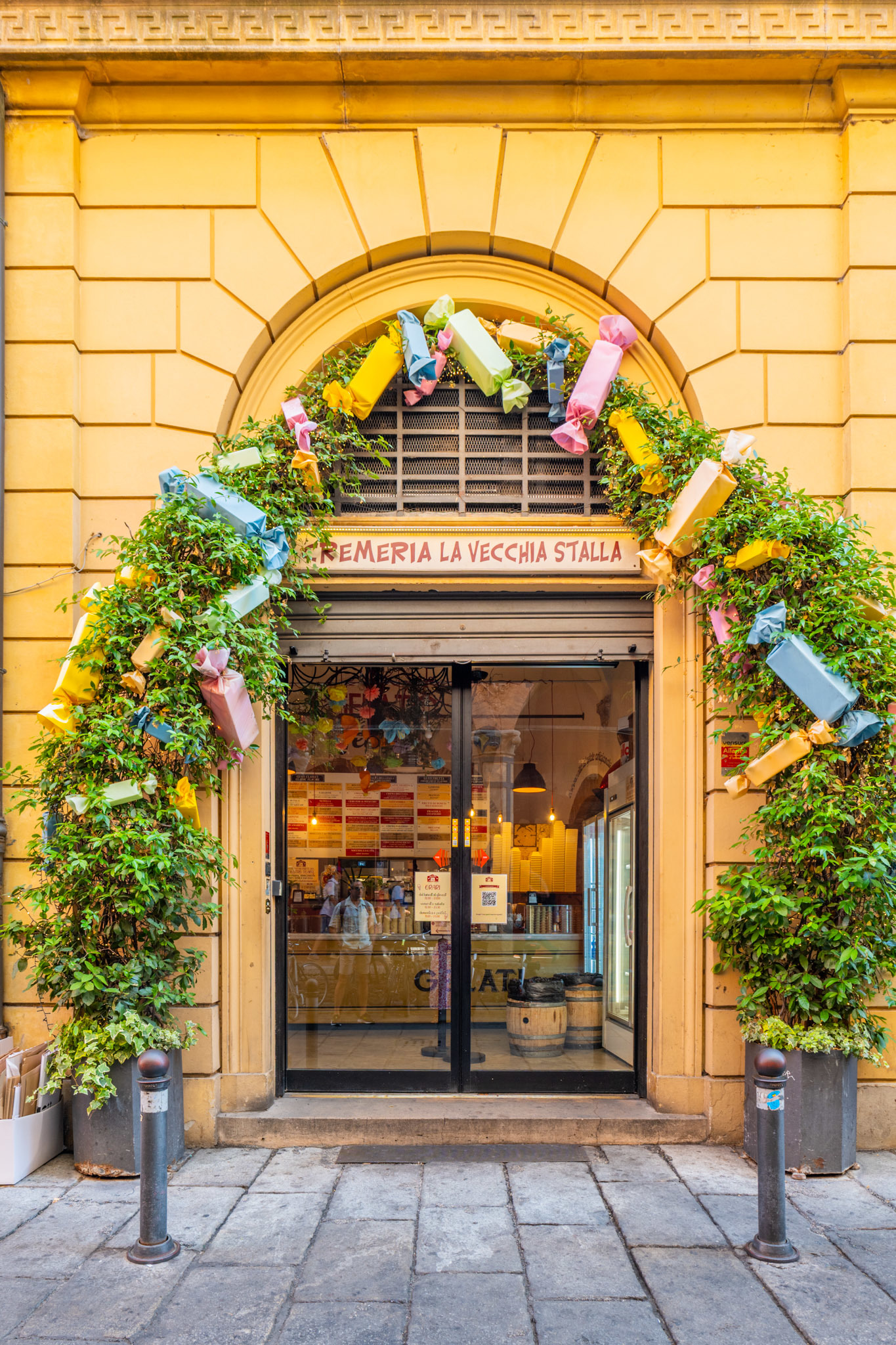 Bologne est une ville touristique et les commerçants rivalisent d’idées pour attirer l’œil et vous donner envie de pousser leur porte. Voilà quelques exemples…