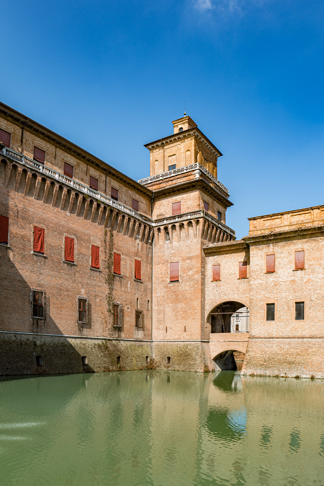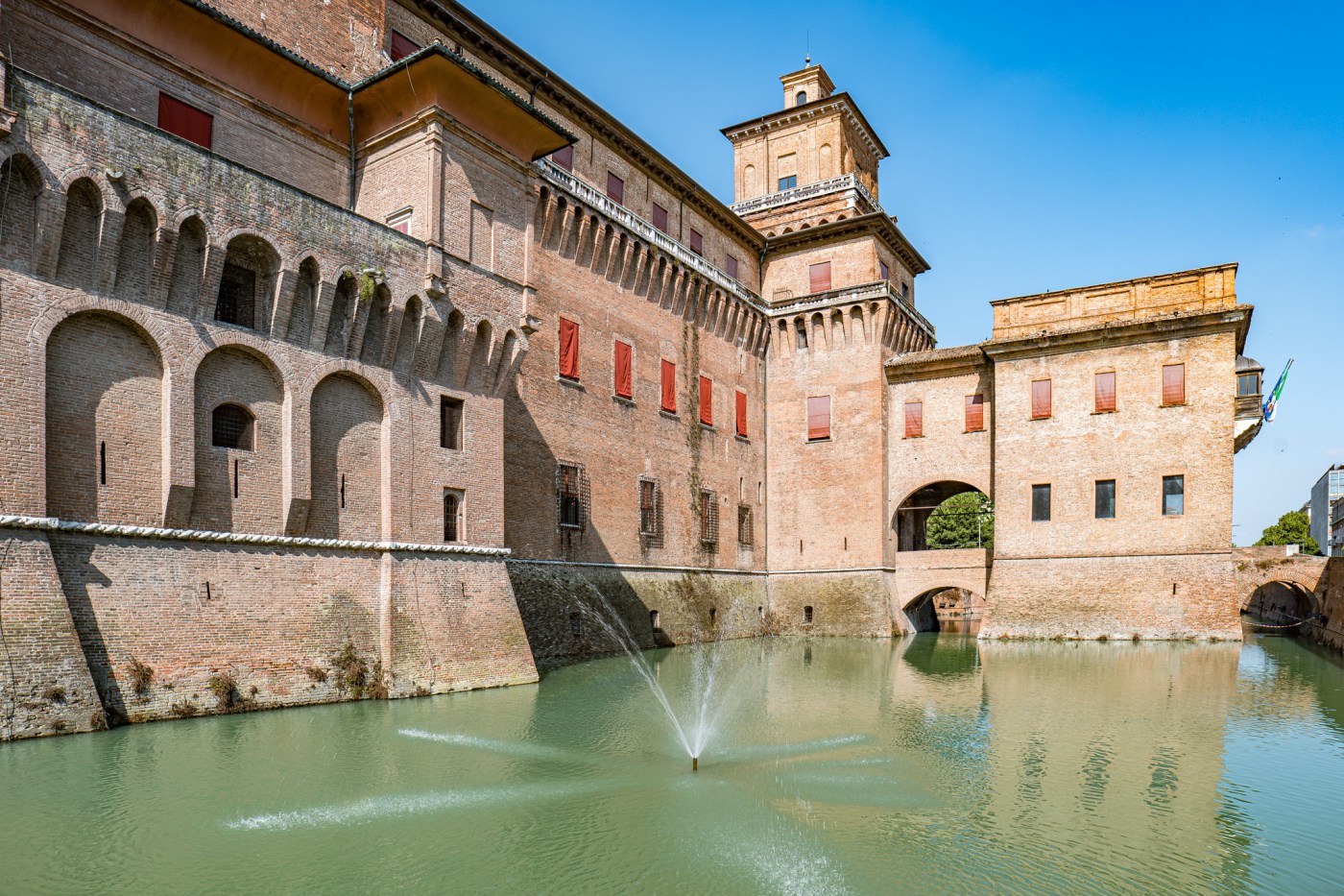 Situé en plein cœur de Ferrare, le château d’Este, également appelé Castello Estense, est l’un des monuments emblématiques de la ville. Edifié au 14ème siècle par la puissante famille d’Este, il impressionne par ses imposants murs de briques rouges, ses tours et son large fossé rempli d’eau. Il offre aujourd’hui un véritable voyage dans l’histoire médiévale de la ville.