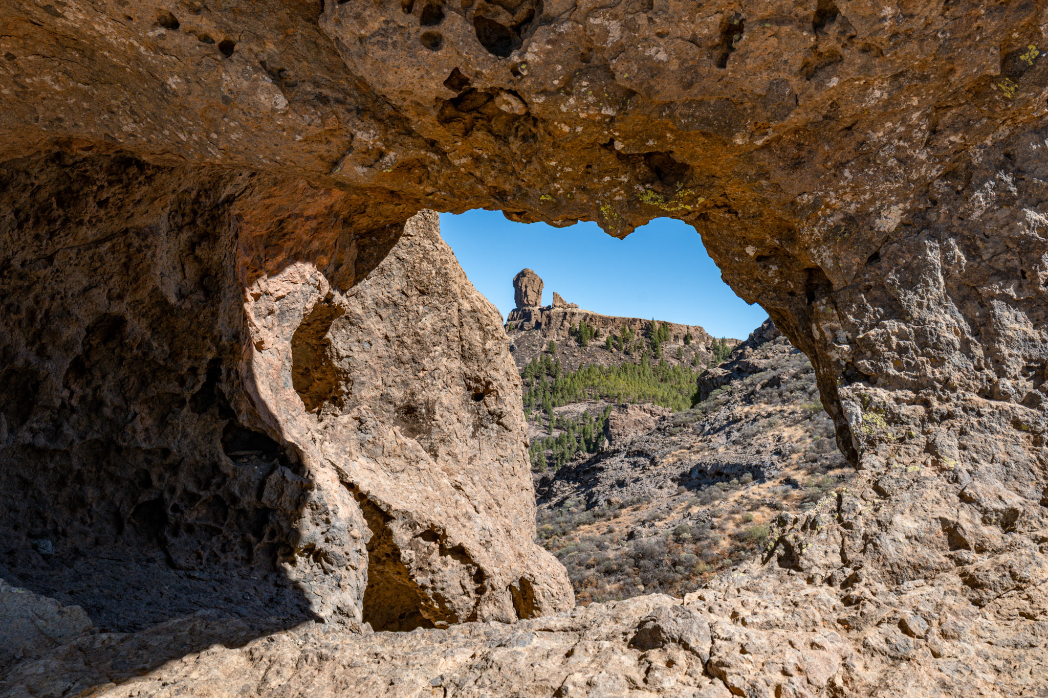 Ventana de BentaygaSur le côté de l’arche principal, une formidable vue d’une seconde ouverture dans la roche avec le Roque Nublo juste en face ! De quoi donner une superbe perspective à cette photo !