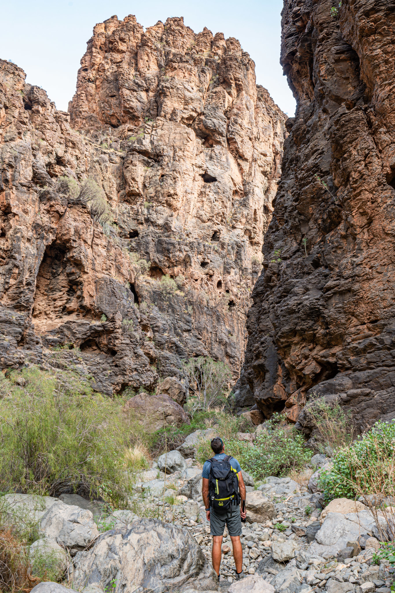Une fois arrivés au fond, on s’enfonce dans le barranco sur la gauche et on marche encore quelques centaines de mètres avant de faire demi-tour. On se croirait vraiment dans un canyon des Etats-Unis, c’est fou !