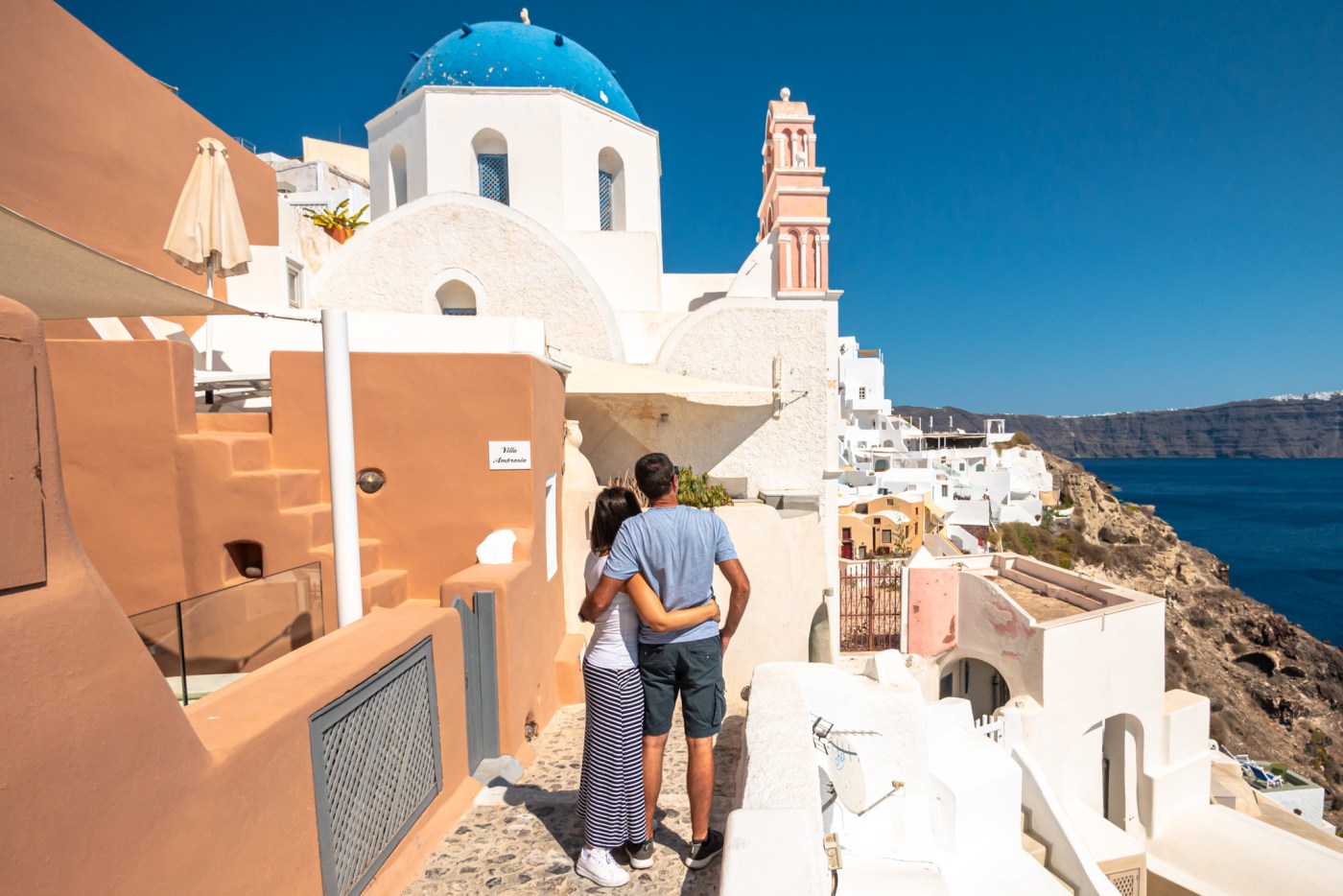 On en avait rêvé, on y est ! Nous récupérons notre scooter et nous filons sans attendre vers Oia, centre névralgique de l’île, ville la plus connue et la plus visitée avec sa capitale, Fira. Oia, c’est THE place to be ! C’est la ville des influenceuses par excellence, où elles défilent toutes avec leurs fringues hors…